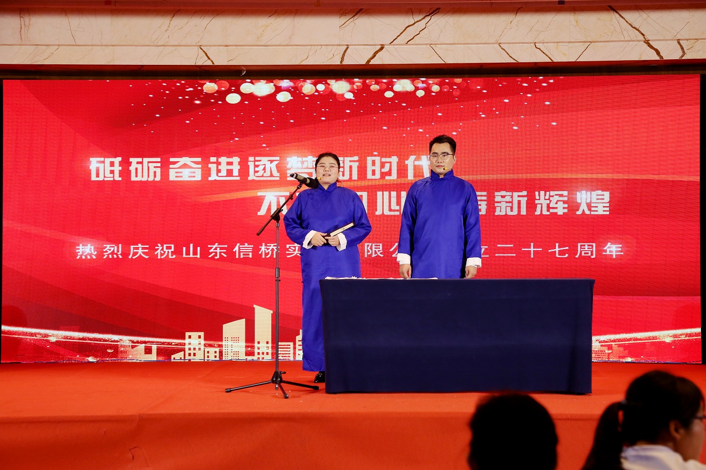 歲月如歌,風(fēng)霜如畫,二十七年彈指一揮間,山東信橋?qū)崢I(yè)有限公司(以下簡稱山東信橋)迎來了二十七周年的生日。二十七年來,信橋人在激烈的市場(chǎng)競(jìng)爭中奮力拼搏、砥礪前行,接受了市場(chǎng)風(fēng)風(fēng)雨雨的洗禮,取得了累累碩果。為了慶祝這一特殊的日子,2021年8月8日,以“拼搏進(jìn)取,開創(chuàng)新時(shí)代”為主題的山東信橋二十七周年慶典活動(dòng)在寶盛大酒店舉行。