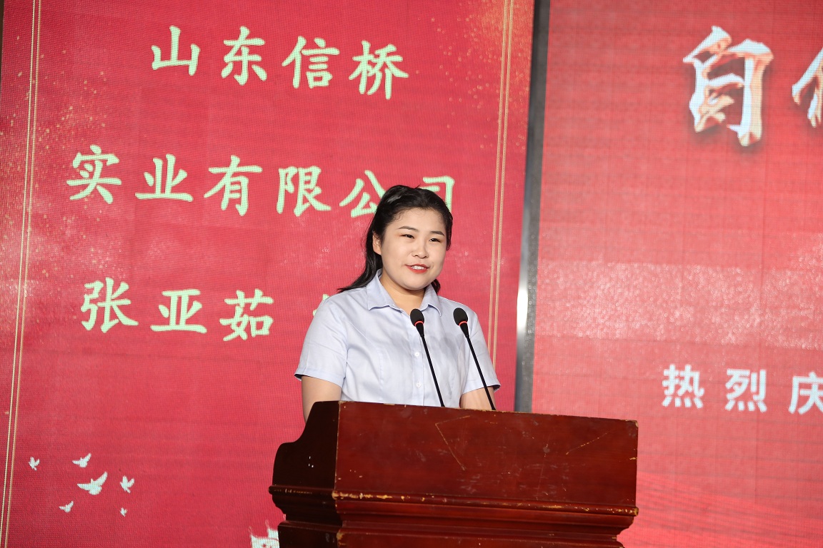 員工代表張亞茹講話,她是青年一代的代表,代表了從校園進信橋的一代,感慨了信橋二十幾年的發(fā)展,感謝信橋給予她的財富和能力。
