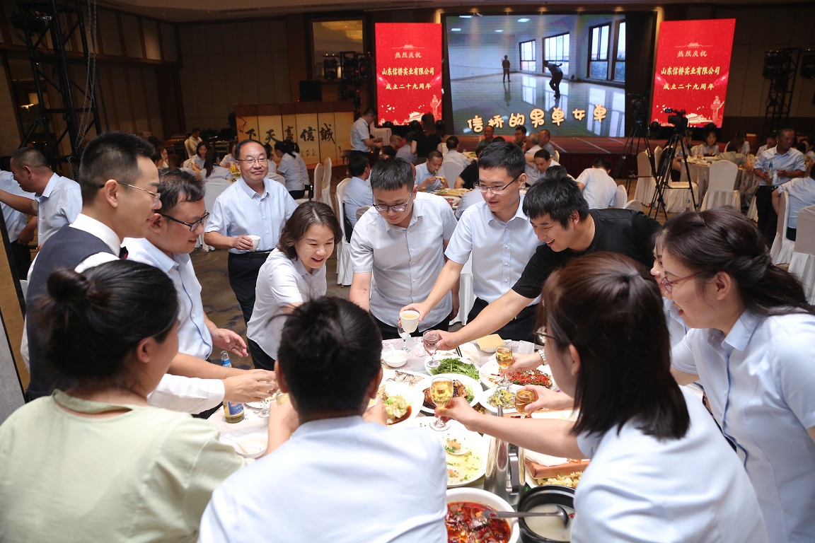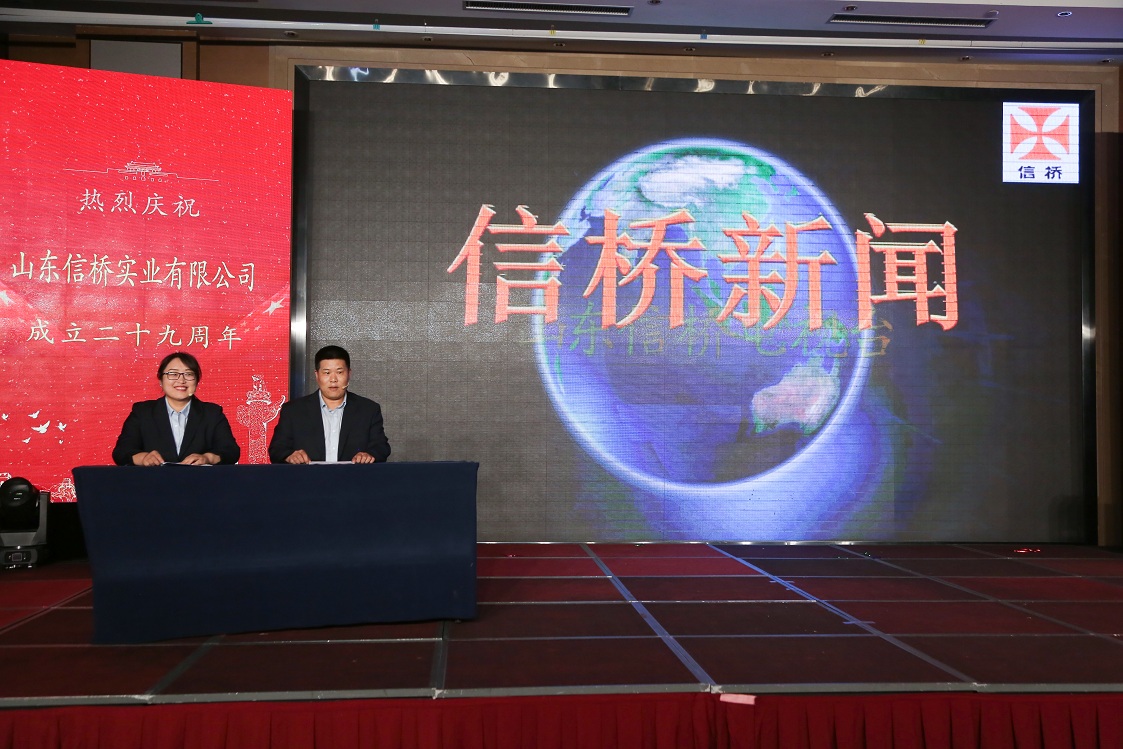 歲月如歌,風(fēng)霜如畫,二十九年彈指一揮間,山東信橋?qū)崢I(yè)有限公司(以下簡稱山東信橋)迎來了二十九周歲的生日。二十九年來,信橋人在激烈的市場競爭中奮力拼搏、砥礪前行,接受了市場風(fēng)風(fēng)雨雨的洗禮,取得了累累碩果。為了慶祝這一特殊的日子,2023年8月8日,以“激流勇進,安定團結(jié)謀發(fā)展 披荊斬棘,開拓創(chuàng)新向未來”為主題的山東信橋二十九周年慶典活動在寶盛大酒店舉行。
