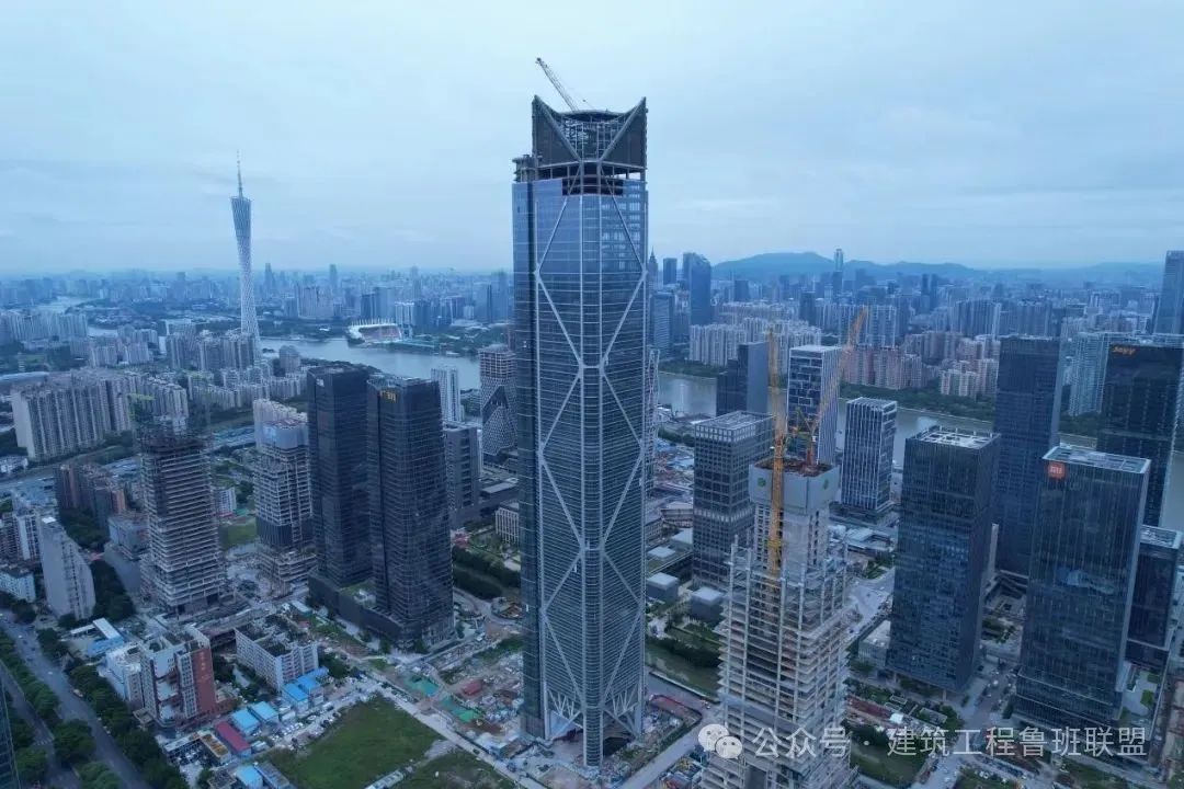 塔樓建筑高度為375.5米,采用巨型框架(鋼管砼柱)-鋼支撐+偏心支撐結(jié)構(gòu)體系,主體塔樓用鋼量5萬噸。結(jié)構(gòu)體系的主要特點包括:中部4根柱在第7層傾斜轉(zhuǎn)換到地面層、周邊普通柱由兩道帶狀桁架轉(zhuǎn)換、外圍抗彎框架和巨撐不在同一平面。