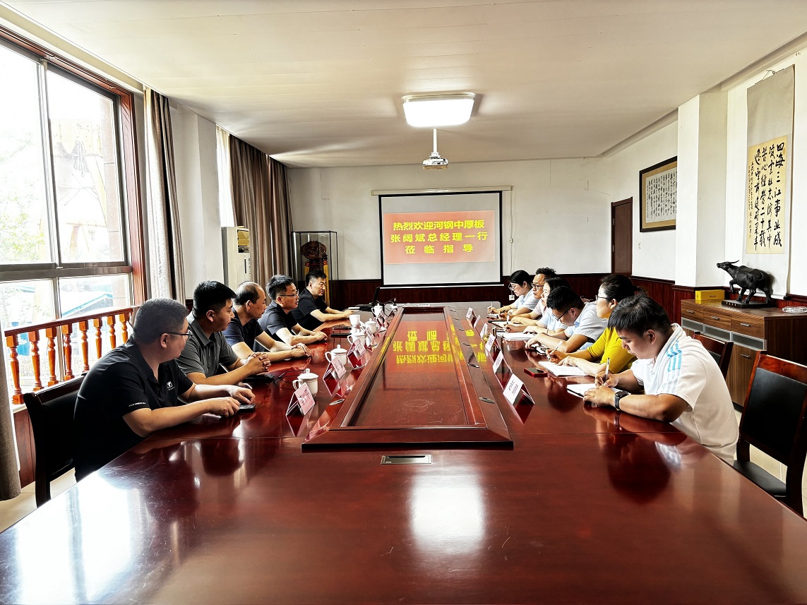 5月27日上午,河鋼中厚板張闊斌總經(jīng)理一行五人蒞臨山東信橋?qū)崢I(yè)有限公司?偨(jīng)理徐宏對(duì)張闊斌一行的到來表示熱烈歡迎。